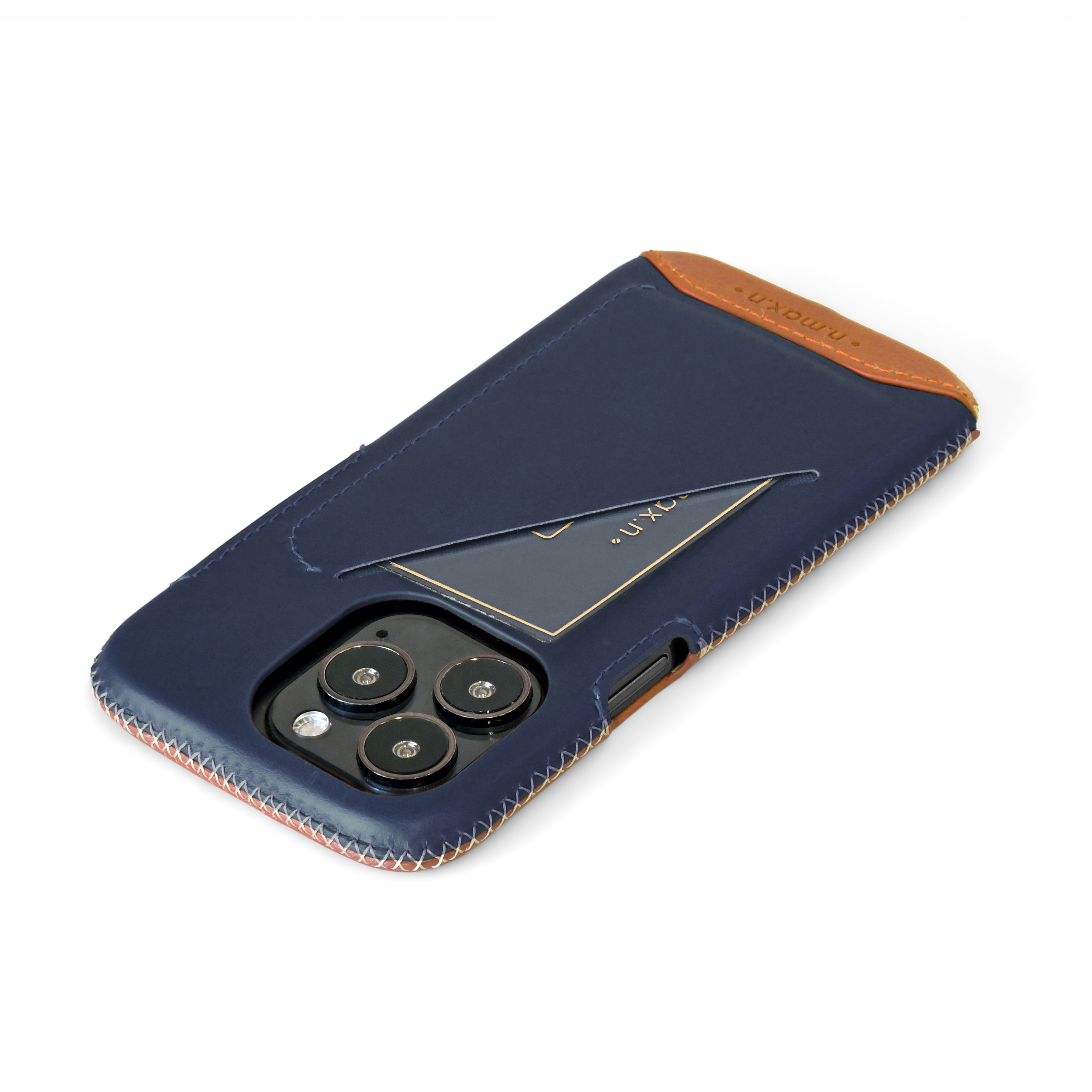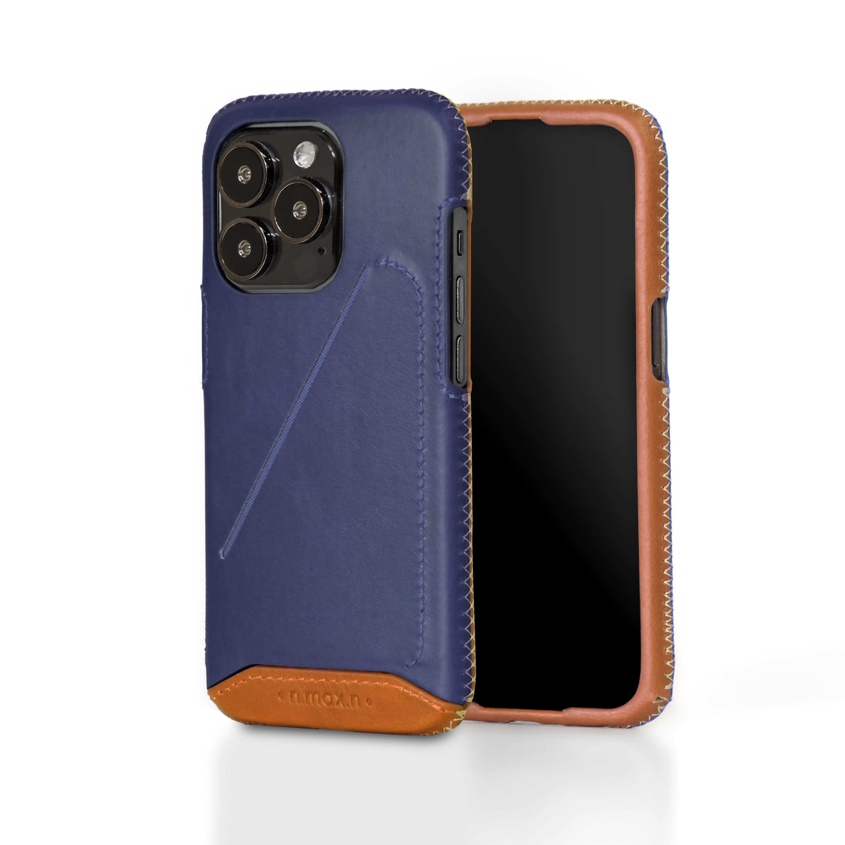 *螢幕加強防撞-使用人字縫線工法將皮革緊緊包覆於螢幕周圍一圈厚達0.8mm錳鋼防護環,手機不慎落地時藉由環狀傳導原理將撞擊力道平均擴散,降低螢幕碎裂風險