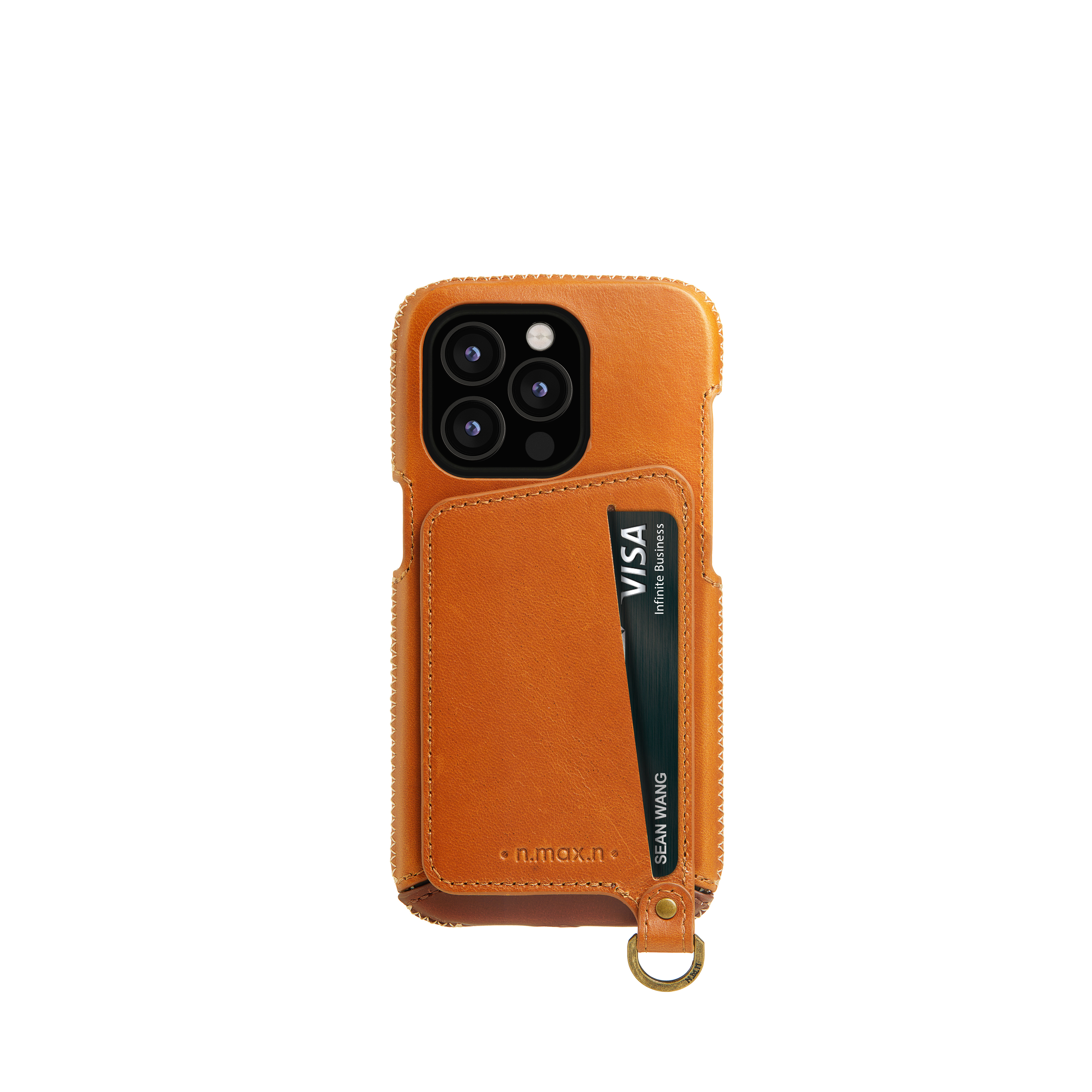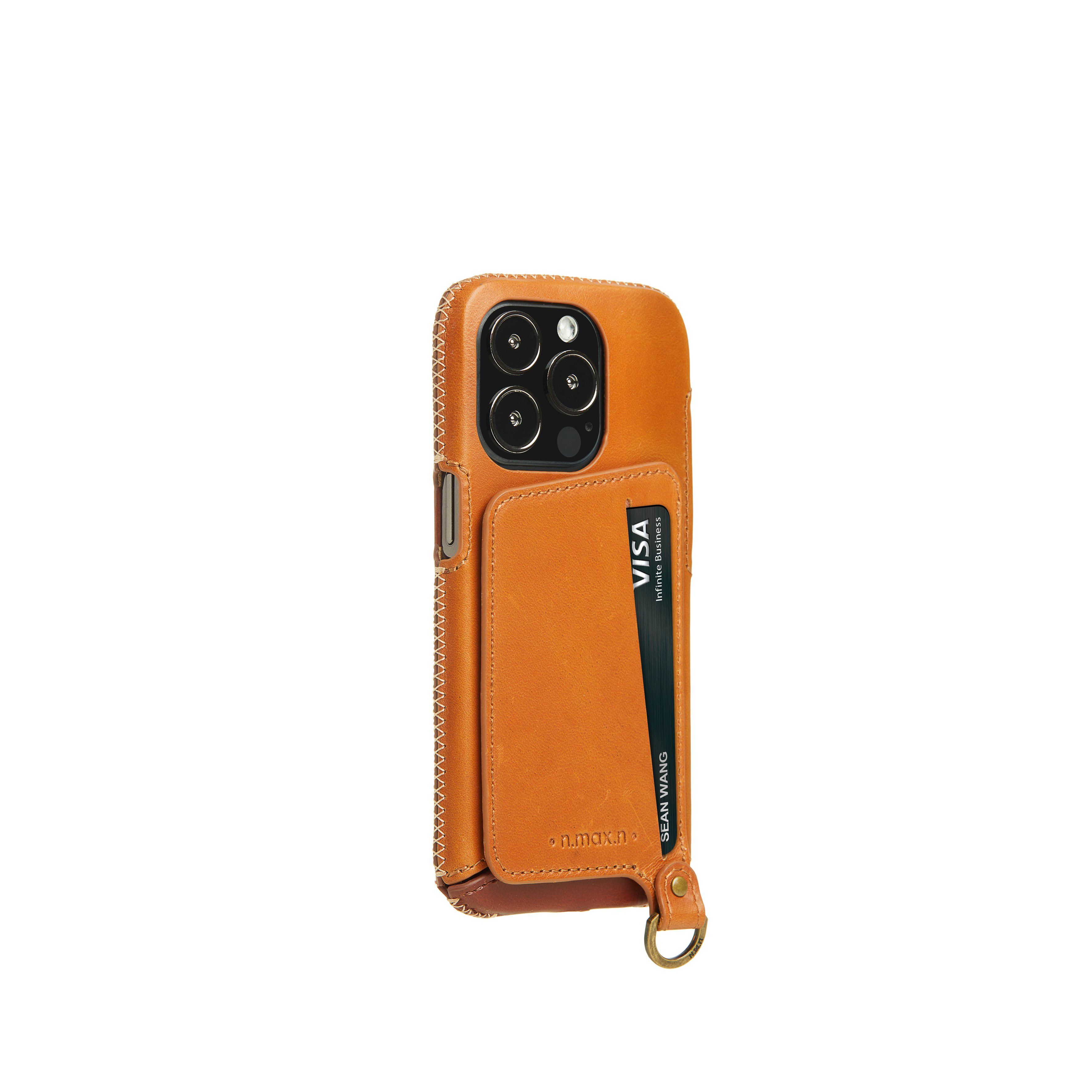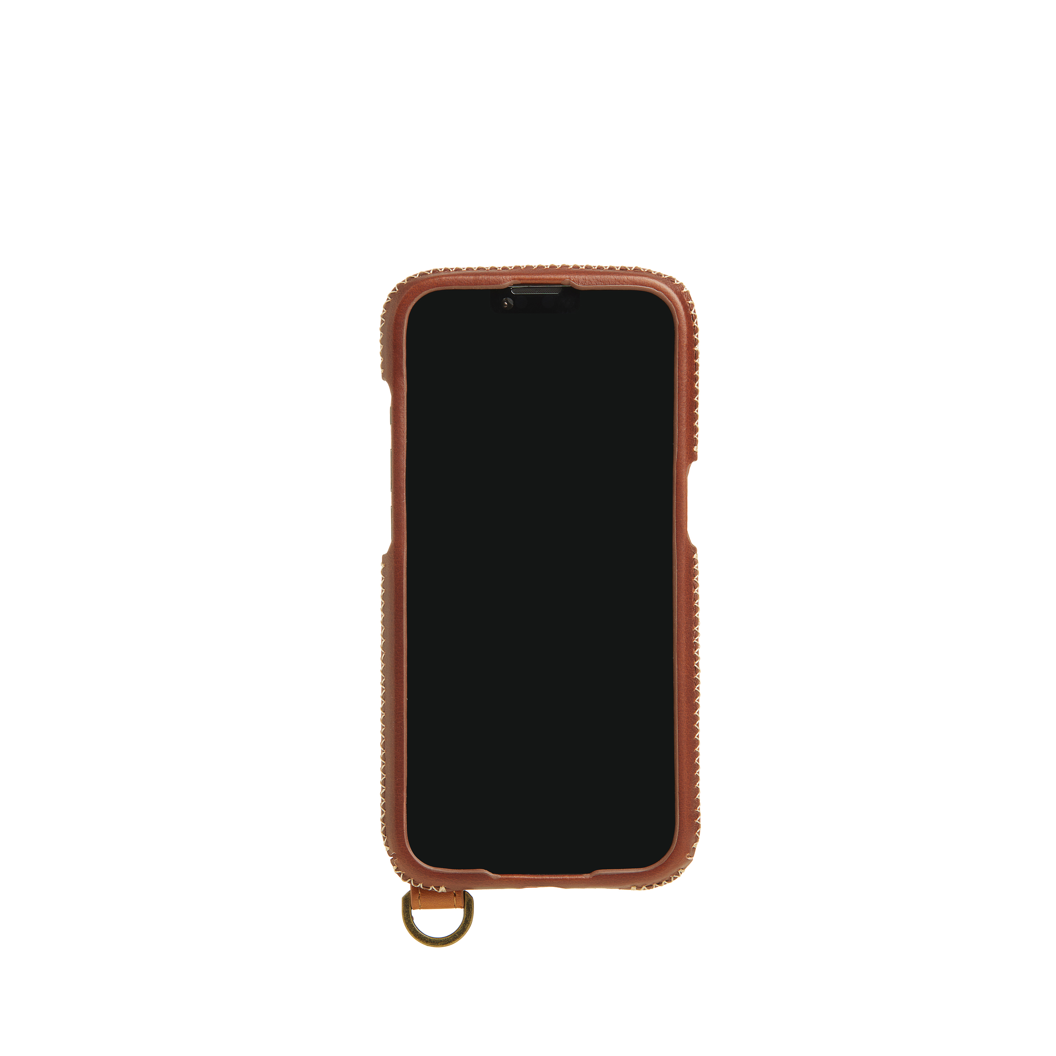 *螢幕加強防撞-使用人字縫線工法將皮革緊緊包覆於螢幕周圍一圈厚達0.8mm錳鋼防護環,手機不慎落地時藉由環狀傳導原理將撞擊力道平均擴散,降低螢幕碎裂風險