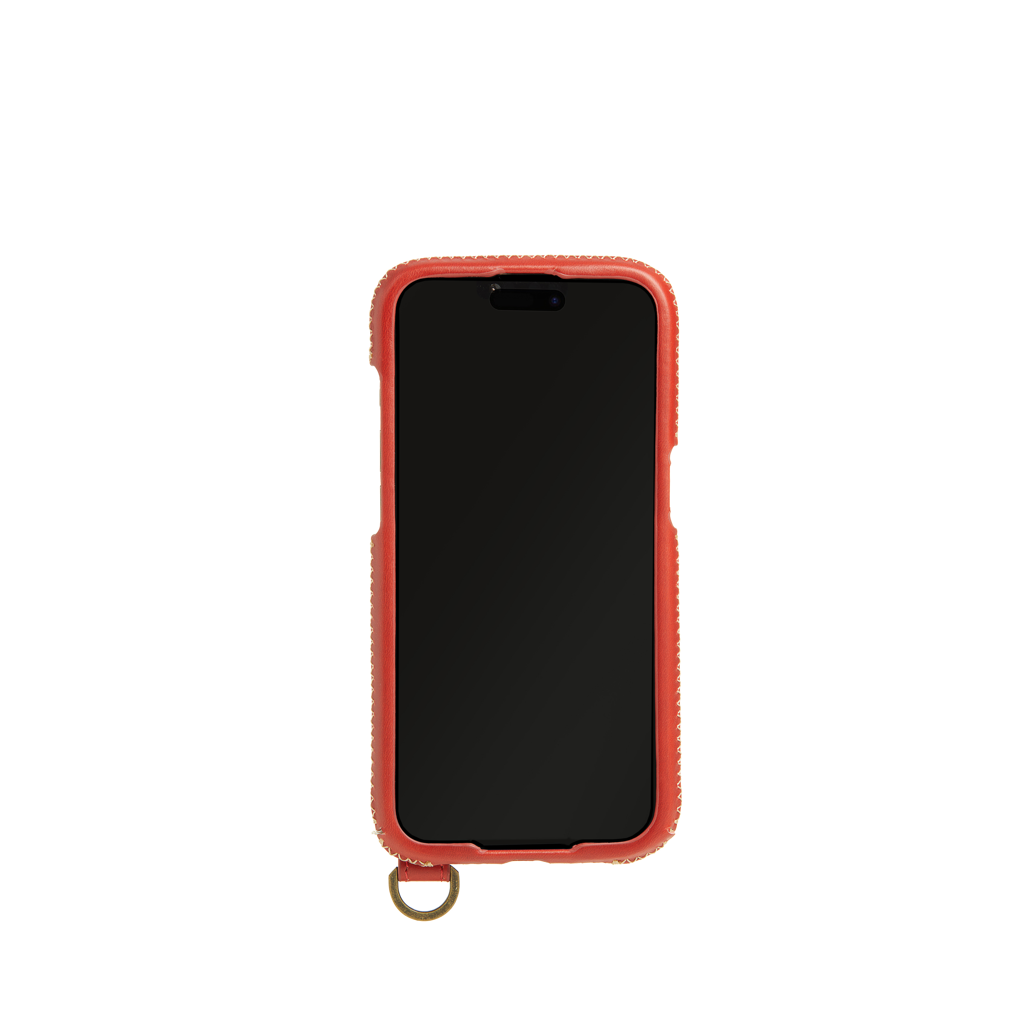 螢幕加強防撞-使用人字縫線工法將皮革緊緊包覆於螢幕周圍一圈厚達0.8mm錳鋼防護環,手機不慎落地時藉由環狀傳導原理將撞擊力道平均擴散,降低螢幕碎裂風險