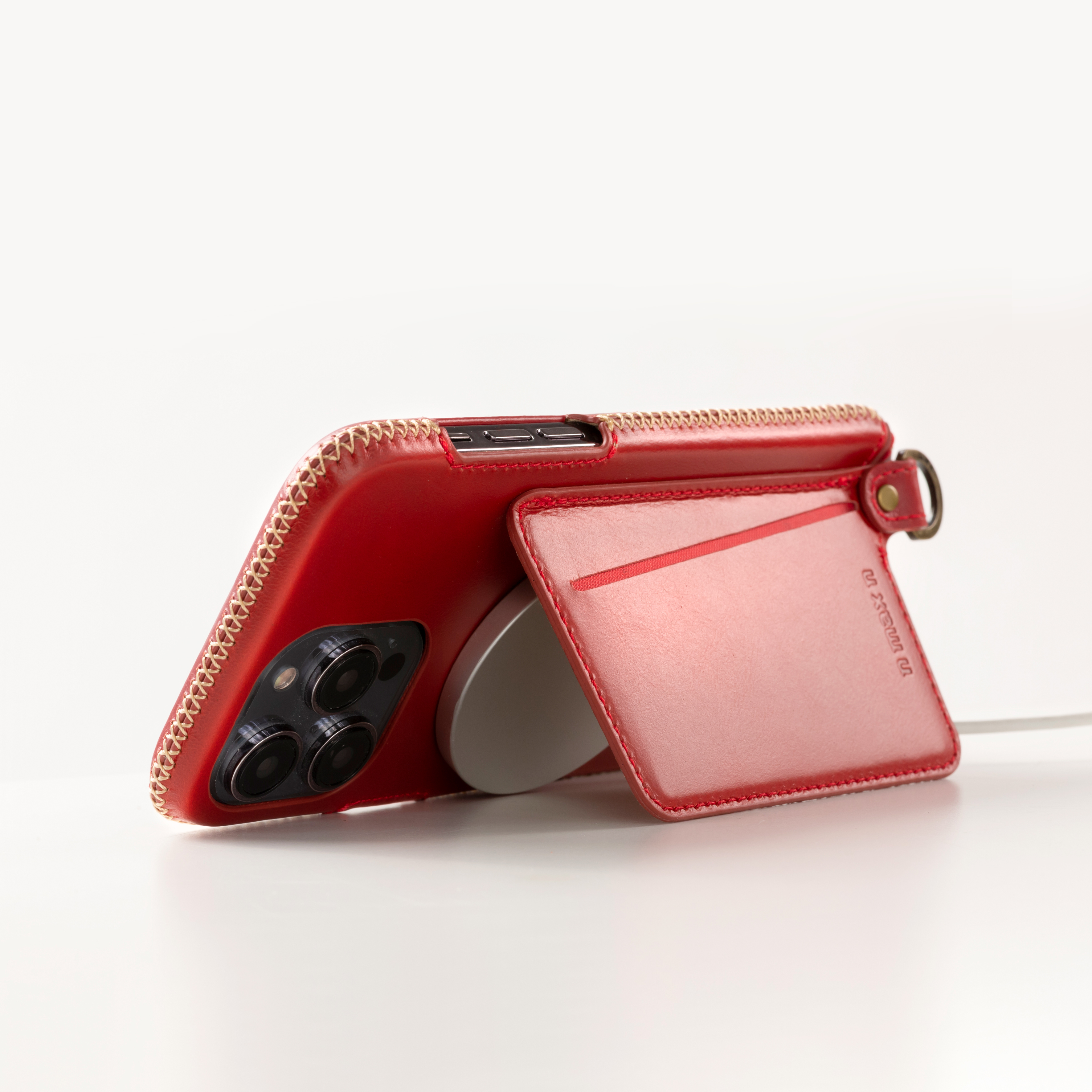 iPhone15 / NO.751MG - 經典系列 磁吸站立卡袋 手機皮套 - 辣椒紅